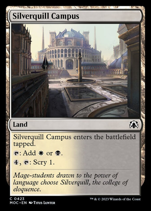 March of the Machine CommanderOut of stockSilverquill Campus enters the battlefield tapped. {T}: Add {W} or {B}. {4}, {T}: Scry 1.
