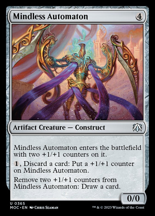 March of the Machine CommanderOut of stockMindless Automaton enters the battlefield with two +1/+1 counters on it. {1}, Discard a card: Put a +1/+1 counter on Mindless Automaton. Remove two...