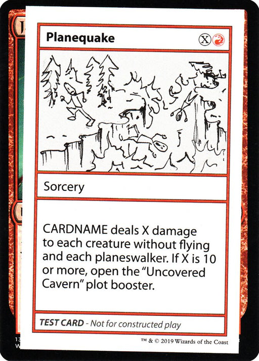 Mystery Booster Playtest Cards 2021Out of stockPlanequake deals X damage to each creature without flying and each planeswalker. If X is 10 or more, open the "Uncovered Cavern" plot booster.