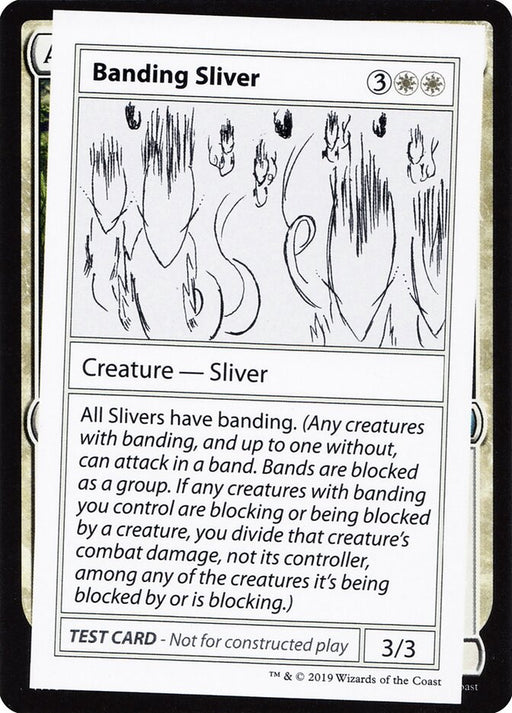 Mystery Booster Playtest Cards 2021Out of stockAll Slivers have banding. (Any creatures with banding, and up to one without, can attack in a band. Bands are blocked as a group. If any creatures ...