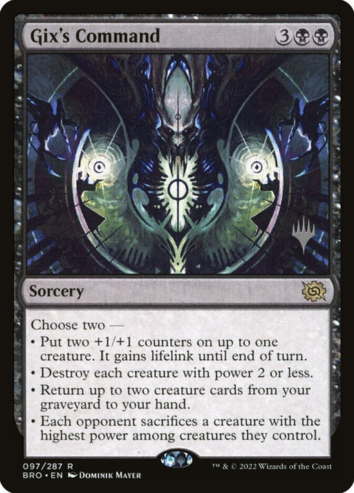 The Brothers' War PromosOut of stockChoose two — • Put two +1/+1 counters on up to one creature. It gains lifelink until end of turn. • Destroy each creature with power 2 or less. • R...