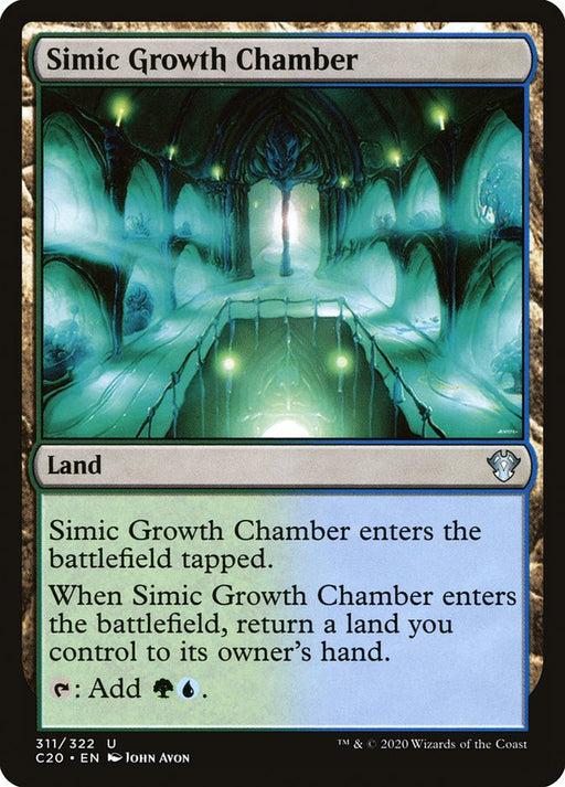 Commander 2020Out of stockSimic Growth Chamber enters the battlefield tapped. When Simic Growth Chamber enters the battlefield, return a land you control to its owner's hand...