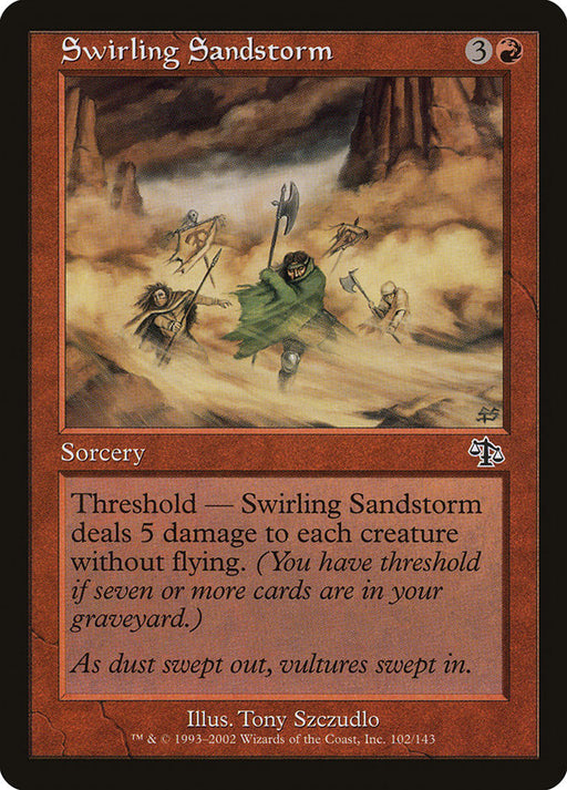 JudgmentOut of stockThreshold — Swirling Sandstorm deals 5 damage to each creature without flying if seven or more cards are in your graveyard.