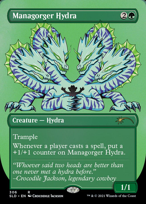 Secret Lair DropOut of stockTrample Whenever a player casts a spell, put a +1/+1 counter on Managorger Hydra.