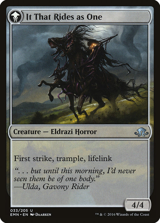 Eldritch MoonIn stockEldrazi you control have vigilance. {2}, {T}, Sacrifice a non-Eldrazi creature: Create a 3/2 colorless Eldrazi Horror creature token.