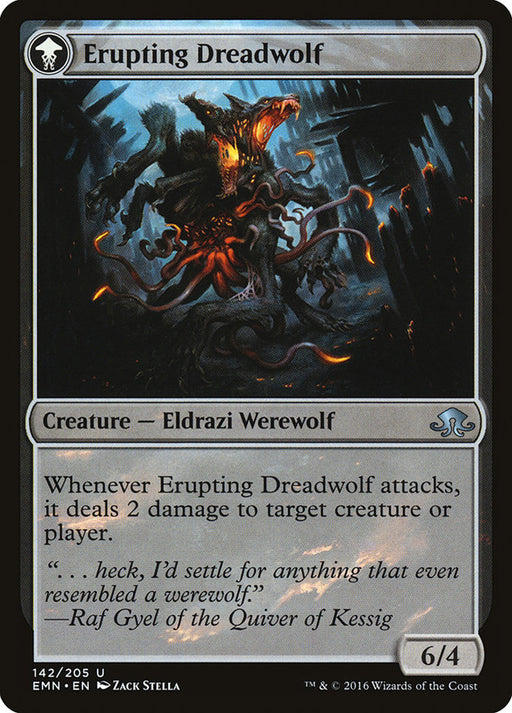 Eldritch MoonIn stockWhenever Erupting Dreadwolf attacks, it deals 2 damage to any target.