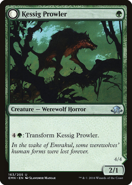 Eldritch MoonIn stock{4}{G}: Transform Kessig Prowler.