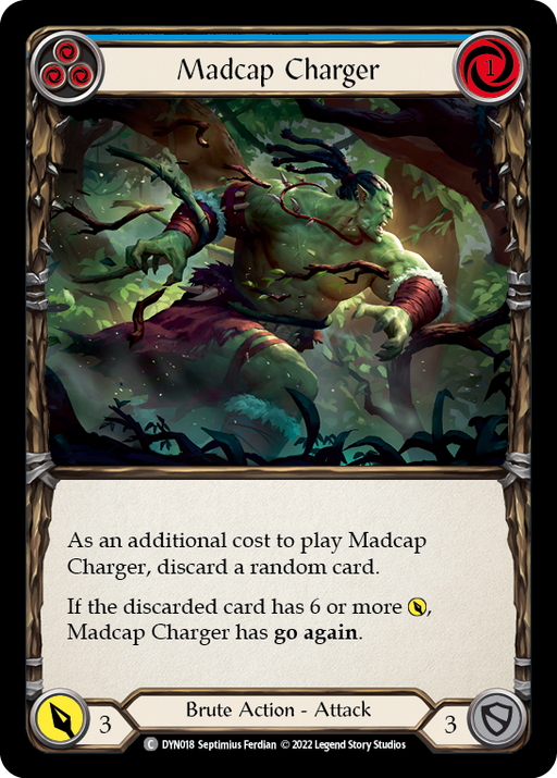 DynastyOut of stockAs an additional cost to play Madcap Charger, discard a random card. If the discarded card has 6 or more {p}, Madcap Charger has go again.