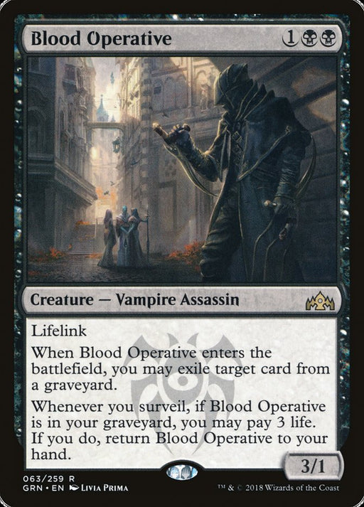 Guilds of RavnicaIn stockLifelink When Blood Operative enters the battlefield, you may exile target card from a graveyard. Whenever you surveil, if Blood Operative is in yo...