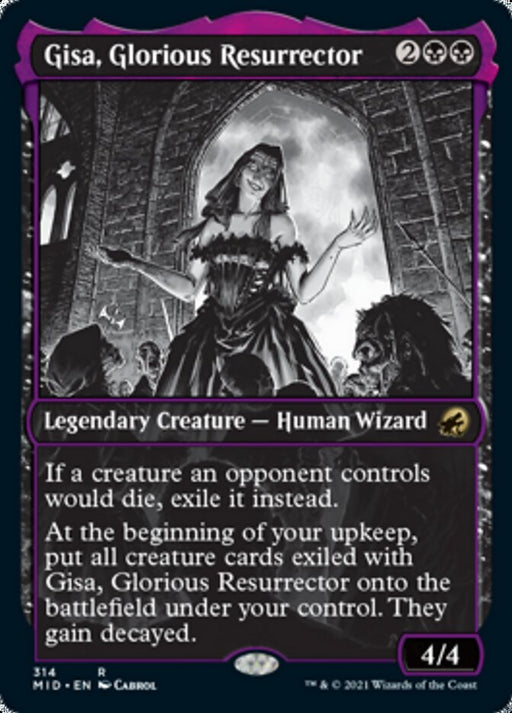 Innistrad: Midnight HuntOut of stockIf a creature an opponent controls would die, exile it instead. At the beginning of your upkeep, put all creature cards exiled with Gisa, Glorious ...