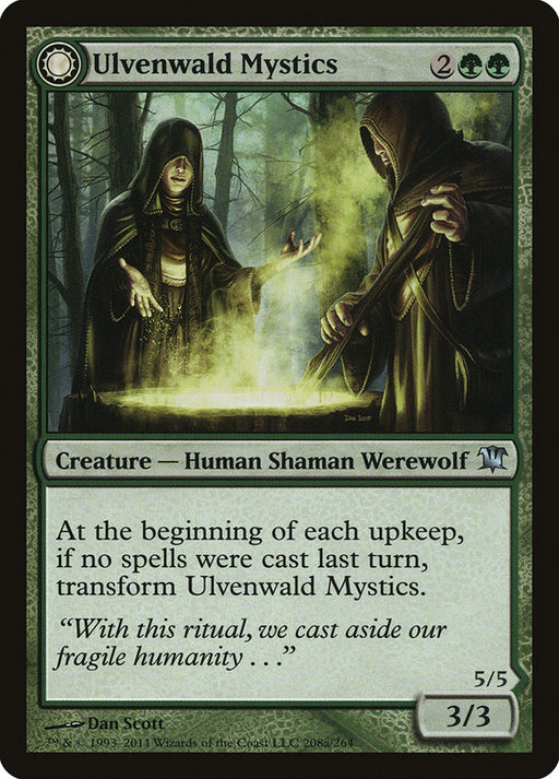 InnistradIn stockAt the beginning of each upkeep, if no spells were cast last turn, transform Ulvenwald Mystics.