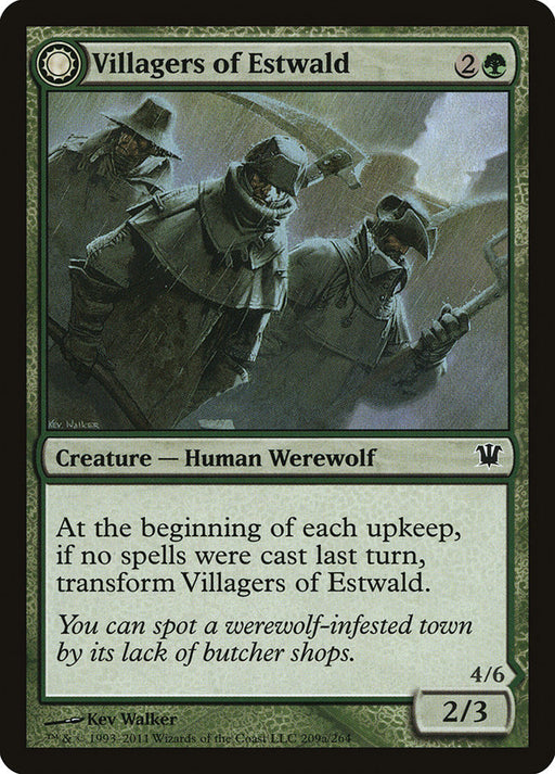 InnistradIn stockAt the beginning of each upkeep, if no spells were cast last turn, transform Villagers of Estwald.