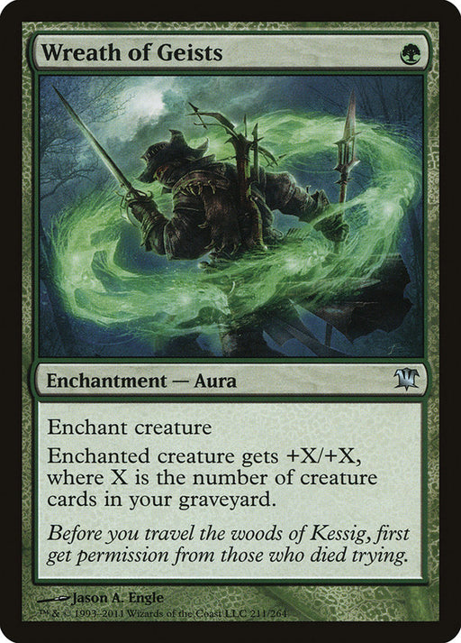 InnistradIn stockEnchant creature Enchanted creature gets +X/+X, where X is the number of creature cards in your graveyard.