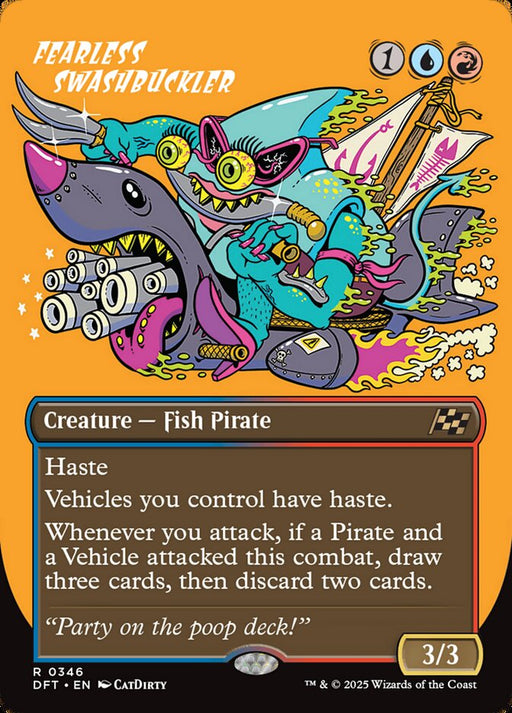 AetherdriftLow stockHaste Vehicles you control have haste. Whenever you attack, if a Pirate and a Vehicle attacked this combat, draw three cards, then discard two cards.