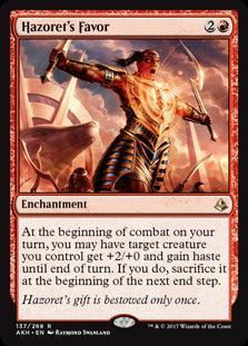 AmonkhetIn stockAt the beginning of combat on your turn, you may have target creature you control get +2/+0 and gain haste until end of turn. If you do, sacrifice ...