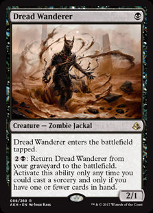 AmonkhetIn stockDread Wanderer enters the battlefield tapped. {2}{B}: Return Dread Wanderer from your graveyard to the battlefield. Activate this ability only any ...