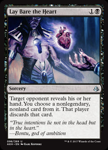 AmonkhetIn stockTarget opponent reveals their hand. You choose a nonlegendary, nonland card from it. That player discards that card.