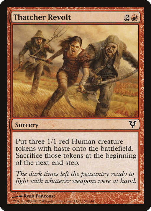 Avacyn RestoredIn stockCreate three 1/1 red Human creature tokens with haste. Sacrifice those tokens at the beginning of the next end step.