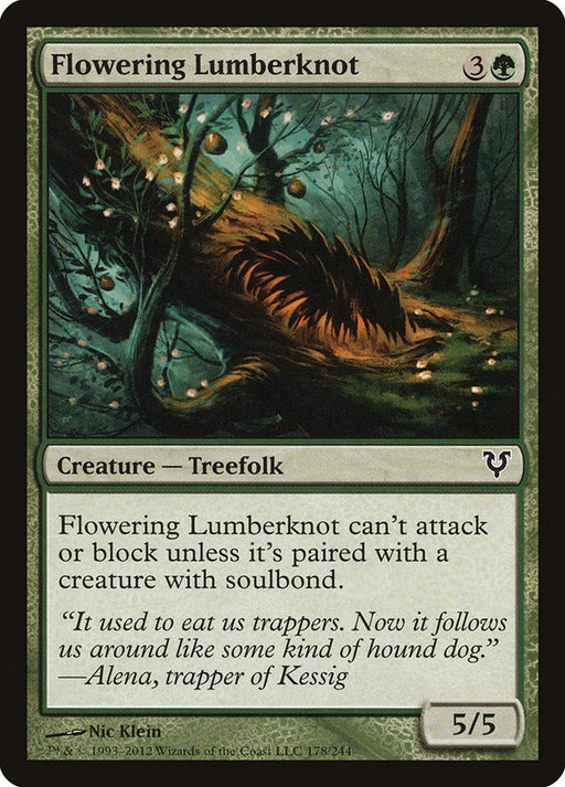 Avacyn RestoredIn stockFlowering Lumberknot can't attack or block unless it's paired with a creature with soulbond.
