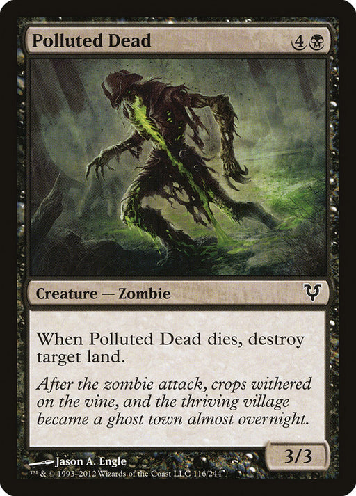 Avacyn RestoredIn stockWhen Polluted Dead dies, destroy target land.