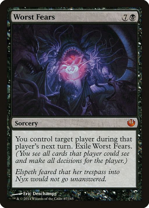 Journey into NyxLow stockYou control target player during that player's next turn. Exile Worst Fears. (You see all cards that player could see and make all decisions for th...
