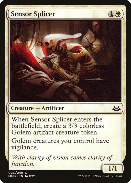 Modern Masters 2017In stockWhen Sensor Splicer enters the battlefield, create a 3/3 colorless Golem artifact creature token. Golem creatures you control have vigilance.