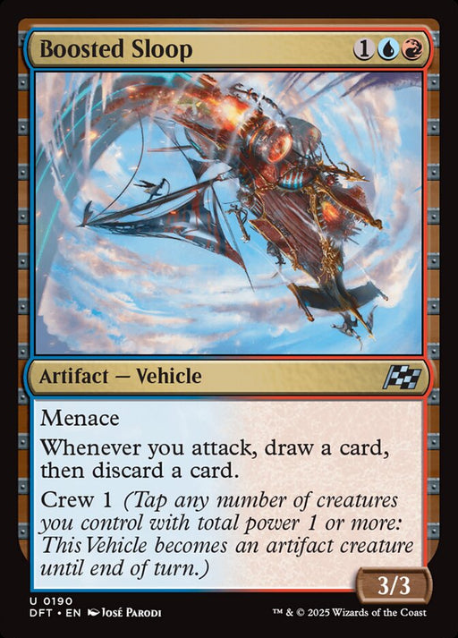 Menace Whenever you attack, draw a card, then discard a card. Crew 1 (Tap any number of creatures you control with total power 1 or more: This Vehi...
