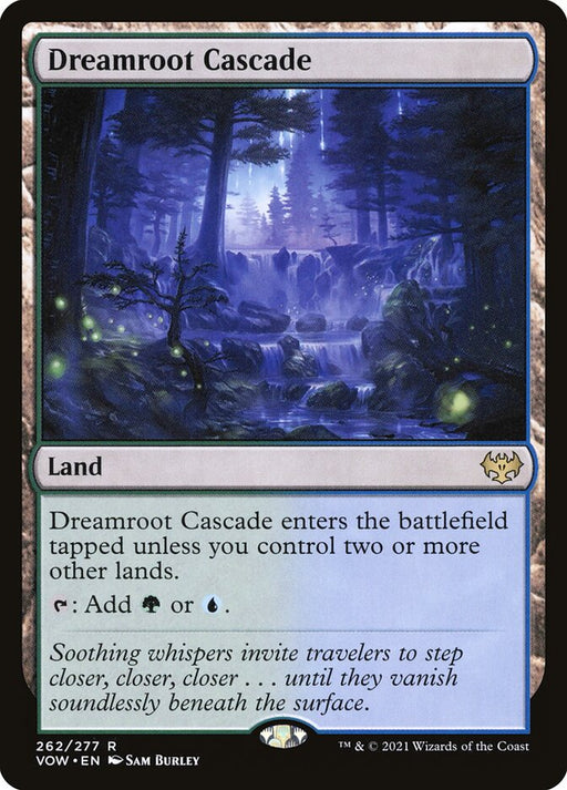 Innistrad: Crimson VowOut of stockDreamroot Cascade enters the battlefield tapped unless you control two or more other lands. {T}: Add {G} or {U}.