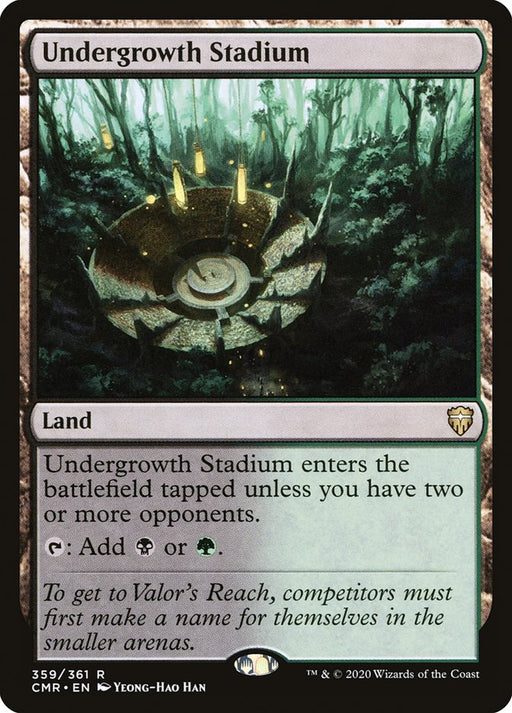 Commander LegendsOut of stockUndergrowth Stadium enters the battlefield tapped unless you have two or more opponents. {T}: Add {B} or {G}.