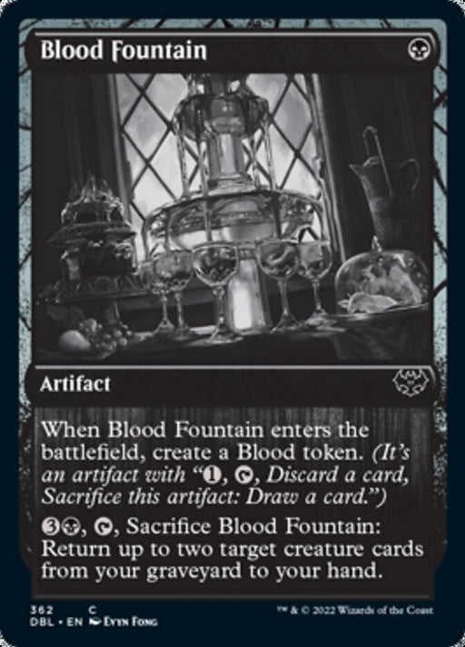 Innistrad: Double FeatureOut of stockWhen Blood Fountain enters the battlefield, create a Blood token. (It's an artifact with "{1}, {T}, Discard a card, Sacrifice this artifact: Draw a...