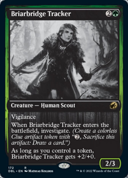 Innistrad: Double FeatureOut of stockVigilance When Briarbridge Tracker enters the battlefield, investigate. (Create a colorless Clue artifact token with "{2}, Sacrifice this artifact:...