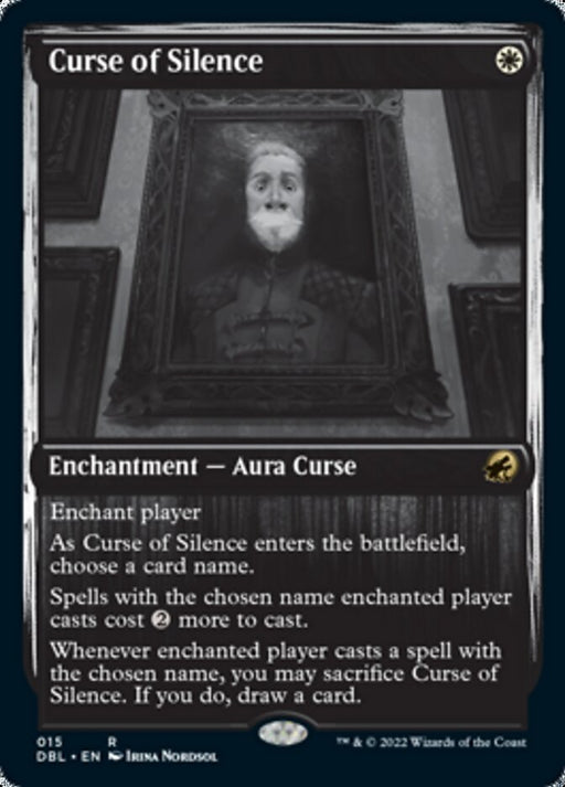 Innistrad: Double FeatureOut of stockEnchant player As Curse of Silence enters the battlefield, choose a card name. Spells with the chosen name enchanted player casts cost {2} more to ...