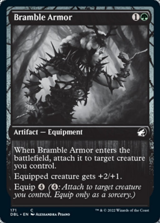 Innistrad: Double FeatureOut of stockWhen Bramble Armor enters the battlefield, attach it to target creature you control. Equipped creature gets +2/+1. Equip {4} ({4}: Attach to target...