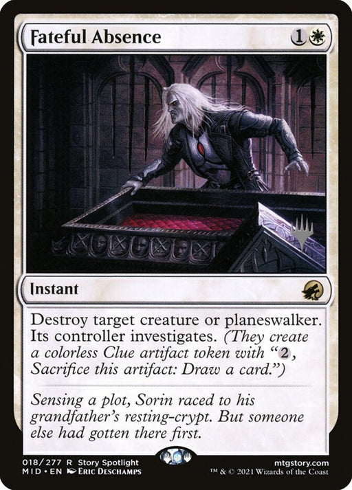 Innistrad: Midnight Hunt PromosOut of stockDestroy target creature or planeswalker. Its controller investigates. (Create a Clue token. It's an artifact with "{2}, Sacrifice this artifact: Dr...