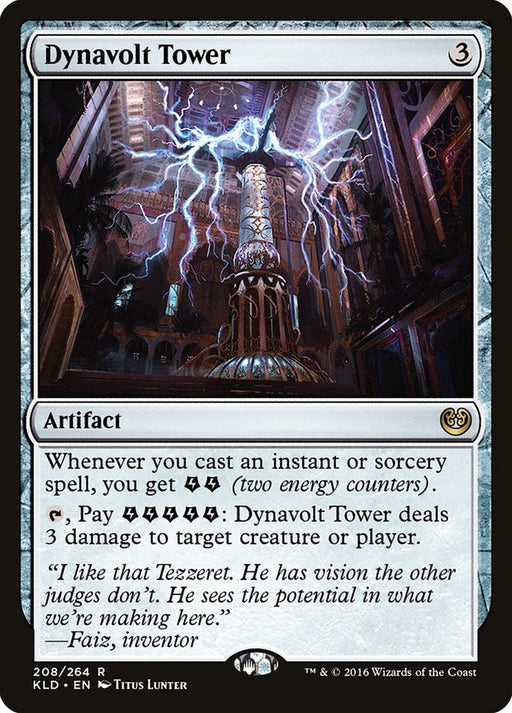 KaladeshIn stockWhenever you cast an instant or sorcery spell, you get {E}{E} (two energy counters). {T}, Pay {E}{E}{E}{E}{E}: Dynavolt Tower deals 3 damage to any...