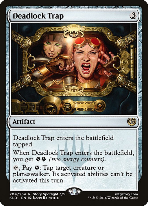 KaladeshIn stockDeadlock Trap enters the battlefield tapped. When Deadlock Trap enters the battlefield, you get {E}{E} (two energy counters). {T}, Pay {E}: Tap tar...