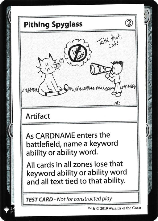 Mystery Booster Playtest Cards 2019Out of stockAs Pithing Spyglass enters the battlefield, name a keyword ability or ability word. All cards in all zones lose that keyword ability or ability wor...