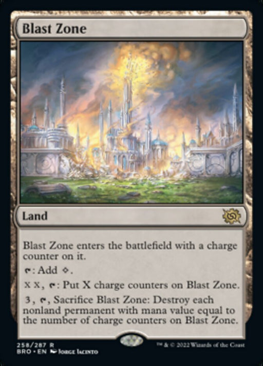 The Brothers' WarOut of stockBlast Zone enters the battlefield with a charge counter on it. {T}: Add {C}. {X}{X}, {T}: Put X charge counters on Blast Zone. {3}, {T}, Sacrifice ...