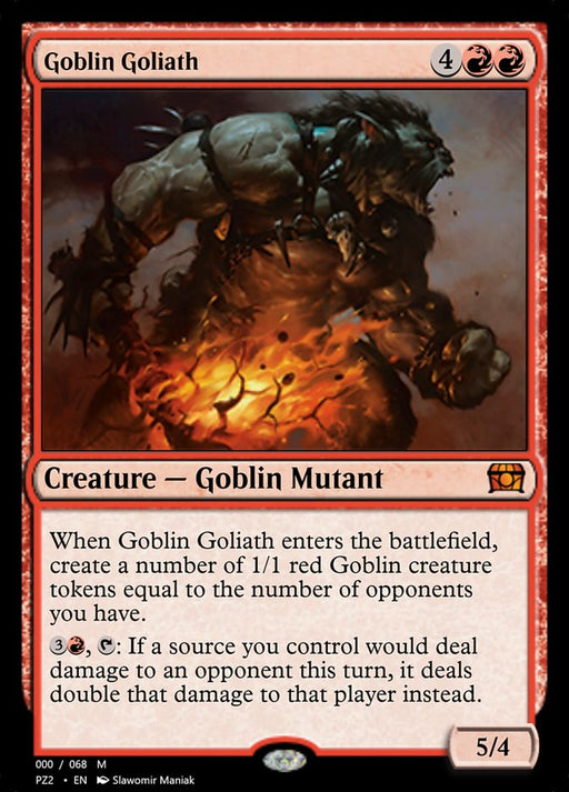 Treasure ChestOut of stockWhen Goblin Goliath enters the battlefield, create a number of 1/1 red Goblin creature tokens equal to the number of opponents you have. {3}{R}, {T...