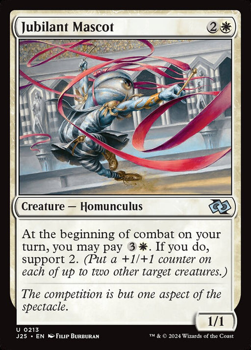 Foundations JumpstartLow stockAt the beginning of combat on your turn, you may pay {3}{W}. If you do, support 2. (Put a +1/+1 counter on each of up to two other target creatures.)