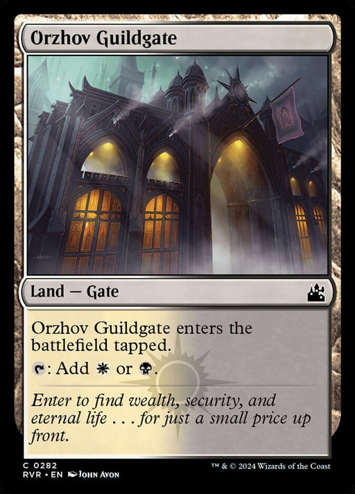 Orzhov Guildgate enters the battlefield tapped. {T}: Add {W} or {B}.