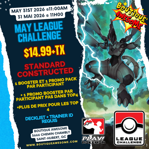 NintendoIn stock🎉 Hey, Trainers! | Salut les Dresseurs ! 🌟It’s time to get your decks ready and sharpen your strategies for the May Pokémon League Challenge at Bou...
