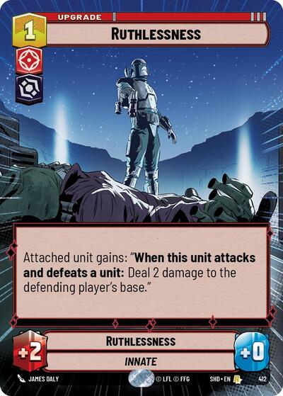 Shadows of the GalaxyLow stockAttached unit gains: “When this unit attacks and defeats a unit: Deal 2 damage to the defending player’s base.”