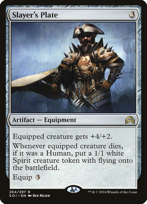 Shadows over InnistradIn stockEquipped creature gets +4/+2. Whenever equipped creature dies, if it was a Human, create a 1/1 white Spirit creature token with flying. Equip {3}