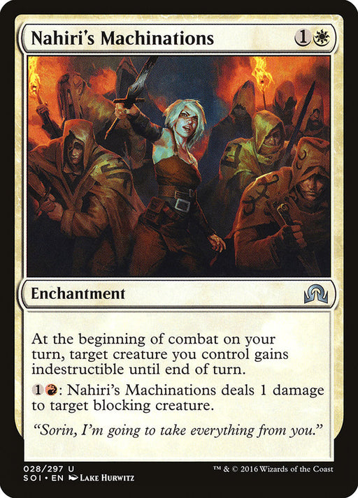 Shadows over InnistradIn stockAt the beginning of combat on your turn, target creature you control gains indestructible until end of turn. {1}{R}: Nahiri's Machinations deals 1 ...