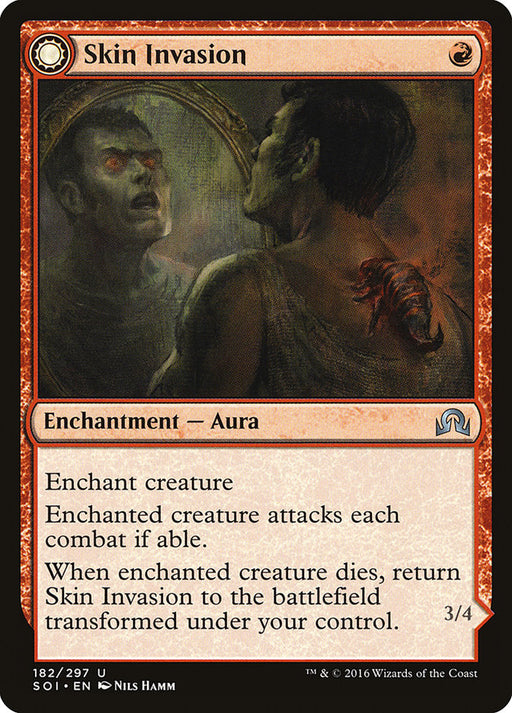 Shadows over InnistradIn stockEnchant creature Enchanted creature attacks each combat if able. When enchanted creature dies, return Skin Invasion to the battlefield transformed ...