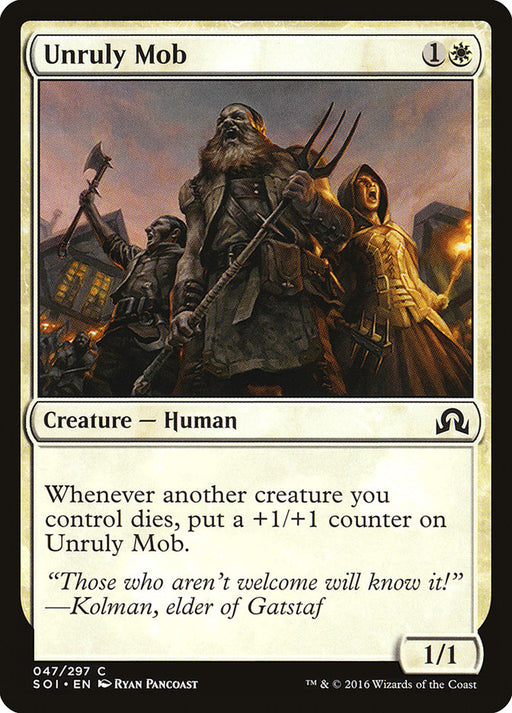 Shadows over InnistradIn stockWhenever another creature you control dies, put a +1/+1 counter on Unruly Mob.