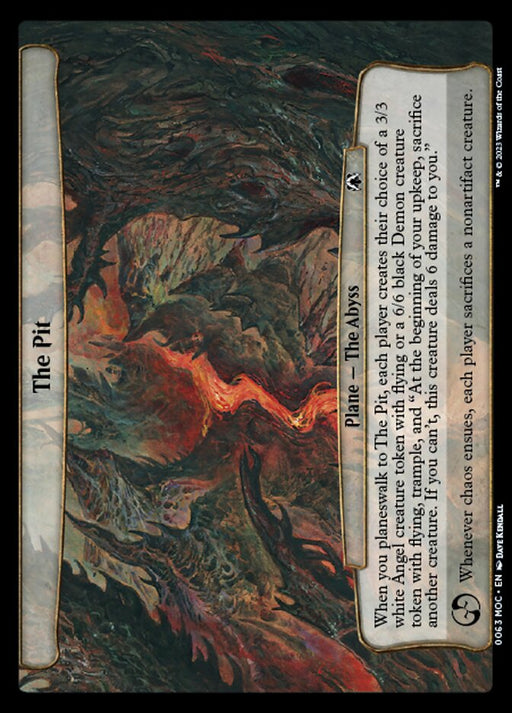 March of the Machine CommanderOut of stockWhen you planeswalk to The Pit, each player creates their choice of a 3/3 white Angel creature token with flying or a 6/6 black Demon creature toke...