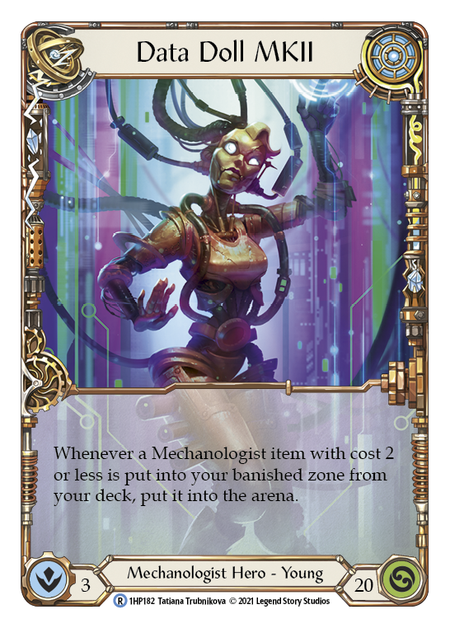 Crucible of WarLow stockWhenever a Mechanologist item with cost 2 or less is put into your banished zone from your deck, put it into the arena.
