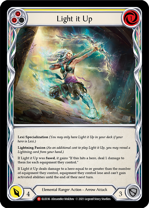 Tales of AriaOut of stock**Lexi Specialization** *(You may only have Light it Up in your deck if your hero is Lexi.)* **Lightning Fusion** *(As an additional cost to play ...